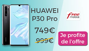 En ce moment Free applique une réduction de 250€ sur les modèles P30 et P30 Pro de Huawei. Le Huawei P30 est affiché à 549€ au lieu de 799€ et le Huawei P30 Pro est affiché à 749€ au lieu de 999€. Free offre aussi la possibilité de payer ces deux modèles en 4 fois sans frais. Si vous achetez l’un de ces smartphones avant le 29 septembre, vous pourrez recevoir gratuitement une paire de d’écouteurs sans-fil FreeBuds Lite d’une valeur de 129€!
