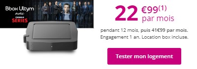 - La BBOX Ultym est quant à elle en promo à 22.99€ par mois pendant 1 an puis repasse à son prix d'origine de 41.99€ par mois. La remise est valable dans le cadre d'une nouvelle souscription jusqu'au 27 octobre.