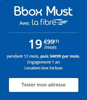 La première qu'est l'offre Must est proposée en promotion à 19,99€ pendant 1 an puis 34.99€ au delà. Pour la Fibre, l’offre Must permet d’atteindre un débit descendant jusqu’à 500Mbit/s et un débit montant jusqu’à 300Mbit/s. Concernant la téléphonie illimitée, avec cet abonnement internet pas cher, les abonnés ont la possibilité d’appeler vers les fixes et les mobiles en France et vers les fixes de plus de 110 destinations. La BBOX Ultym offre en plus les appels illimités vers les mobiles d’Europe et Suisse. Concernant la TV, les clients ont accès à plus de 180 chaînes TV et un enregistreur 128Go. La version ADSL / VDSL est facturée 19,99€ également la première année puis ensuite 32,99€ par mois (2€ de moins que pour la fibre).