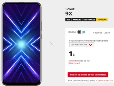 Chez RED by SFR, avec ou sans abonnement et toujours sans engagement, vous pouvez également vous le procurer au prix de 249€. Profitez en même temps de la superbe promo sur le forfait mobile 60Go à 12€ par mois que vous propose cet opérateur jusqu'au 12 Novembre