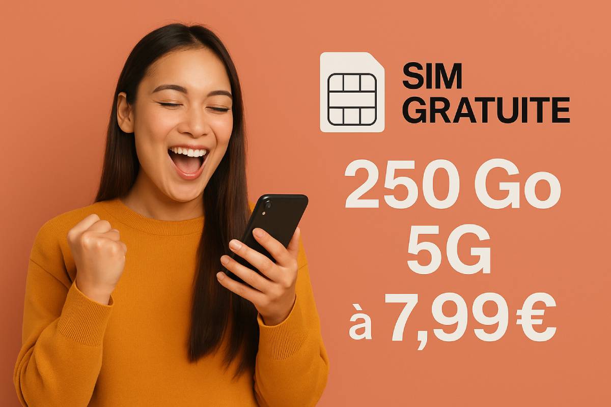 Si vous voulez profiter de la meilleure connexion internet mobile de France, en 5G et de manière quotidienne et intensive. C'est le forfait qu'il vous faut. Avec ses 250 Go de 5G à seulement 8,99€ /mois c'est le meilleur prix au giga du marché. Cette offre sans engagement contient :