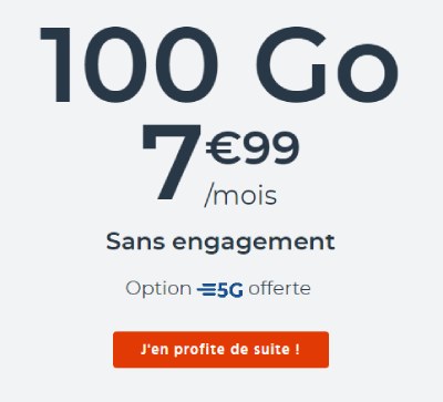 Mais ce n’est pas tout ! Avec le forfait 100 Go Cdiscount Mobile, il n’y a aucune condition d’engagement. En cas de souscription, vous ne prendrez donc pas de risque. Si pour une quelconque raison vous avez besoin d’une enveloppe data plus ou moins conséquente, vous ne serez pas prisonnier d’un contrat. Au contraire, vous aurez toute la liberté de basculer vers l’une des autres offres de l’opérateur.