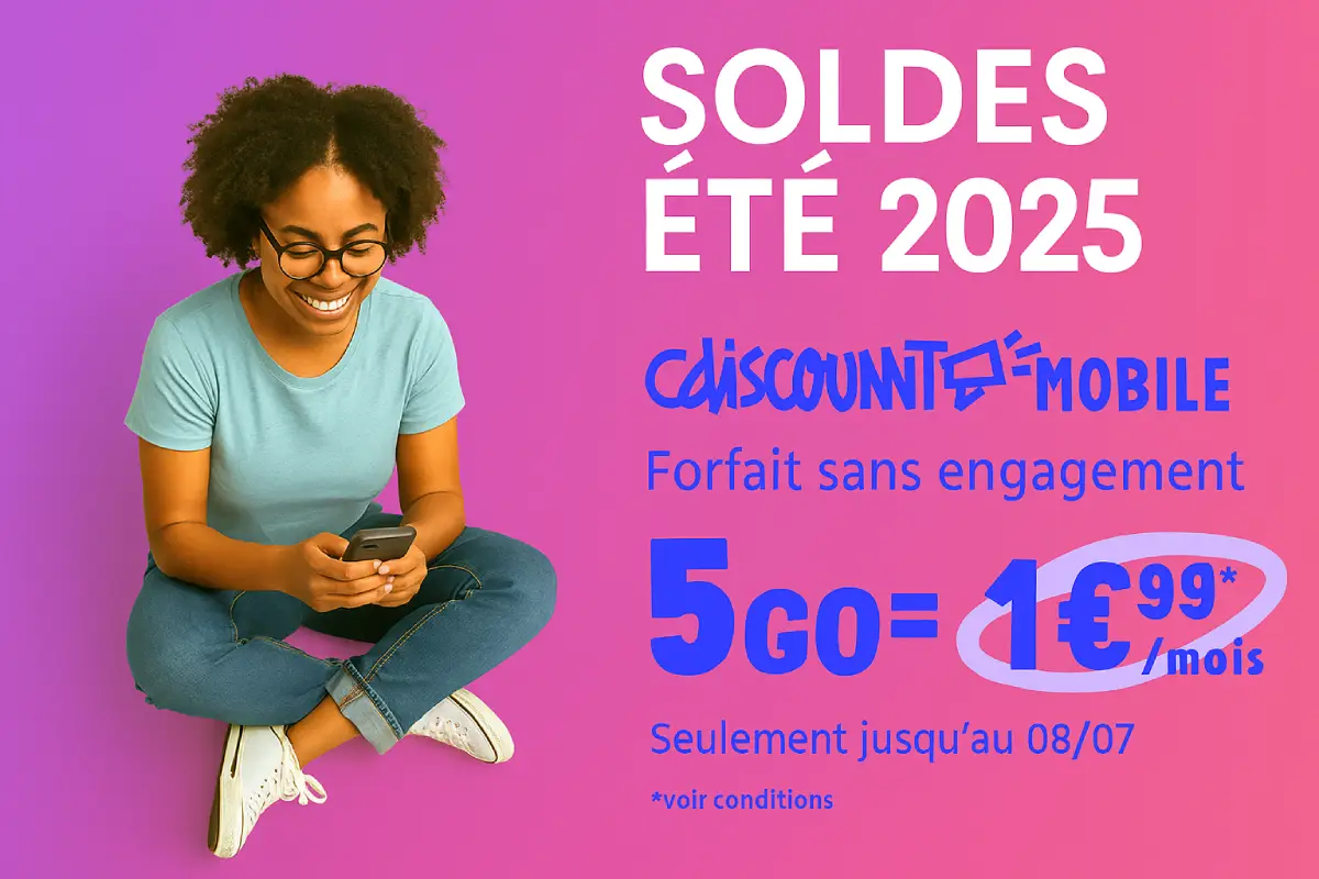 Pour bien démarrer les soldes, Cdiscount Mobile vient de frapper fort avec une offre exceptionnelle : un forfait mobile à 1,99 €/mois incluant 5 Go d’internet mobile, les appels, SMS et MMS illimités, et une enveloppe data utilisable aussi en Europe et dans les DOM. À ce prix-là, on trouve ailleurs seulement 1 à 2 Go.