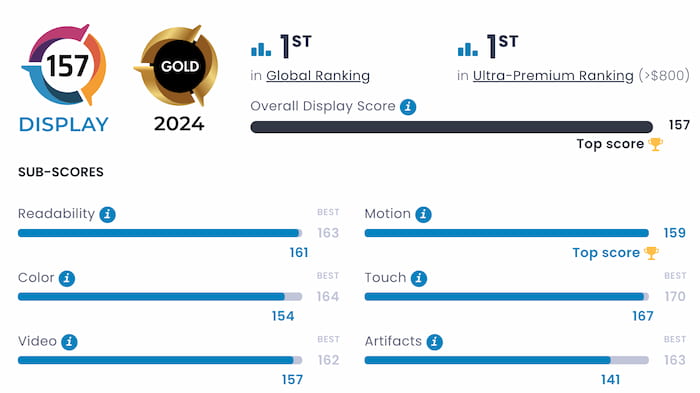 Bien que le Honor Magic 6 Pro vient tout récemment d'être officiellement présenté, le laboratoire indépendant dxOMark a déjà passé au crible les caractéristiques du smartphone. En matière d’affichage, jusqu’ici DxOMark avait attribué la meilleure note au Samsung Galaxy S24 Ultra avec un score de 155. Mais après les tests du dernier smartphone Honor le laboratoire a revu son classement.
