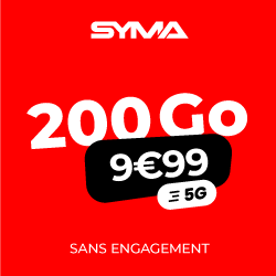 Actuellement, Syma Mobile propose un très bon plan aux nouveaux clients désireux de prendre un forfait mobile XXL à moindre coût. L’opérateur virtuel, dont les abonnements fonctionnent sur le réseau SFR, commercialise en effet une offre 200 Go à seulement 9,99 € par mois.