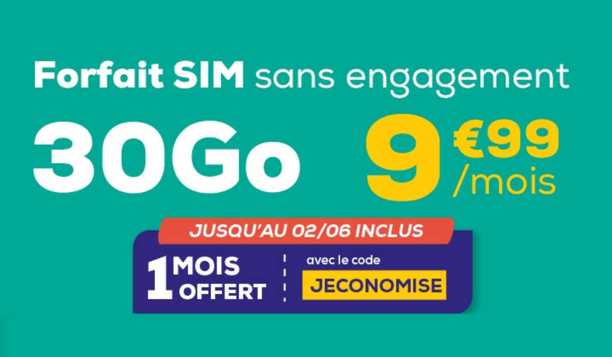 Forfait mobile 30 Go à moins de 10€ + 1 mois d'abonnement offert!