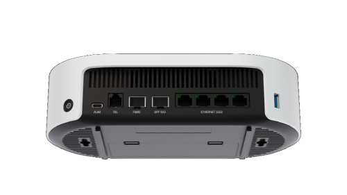 Arborant un design atypique en forme de grosse pilule blanche, c’est le cœur de la box. Il est équipé d’une puce Qualcomm Network Pro Quad-core compatible avec la technologie 10G. Il pèse tout juste 760 g pour des dimensions très compactes (11,9 cm de large, 23 cm de long et 6,5 cm de haut.