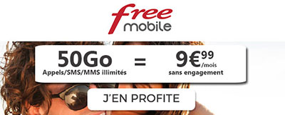 - Free propose sa promo forfait mobile 50Go sans engagement à 9,99€/mois pendant douze mois avant de passer au forfait 100Go à 19,99€/mois