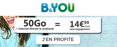 50Go du lundi au vendredi + internet illimité le week-end avec l'offre B&You à 14.99€ par mois