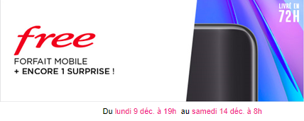 Concernant le smartphone qui pourrait être offert, Free mobile laisse à chaque fois planner le doute avec une photo mise en avant sur le site de Veepee. En Novembre, Free offrait le Xiaomi Mi A3 d'une valeur de 199€ et lors de la dernière opération, le smartphone offert était le Nokia 3.2 d'une valeur de 149€. Cette fois-ci la photo ne nous aide pas beaucoup pour deviner quel sera la surprise donc rendez--vous à 19h ce soir sur le site Veepee.fr .