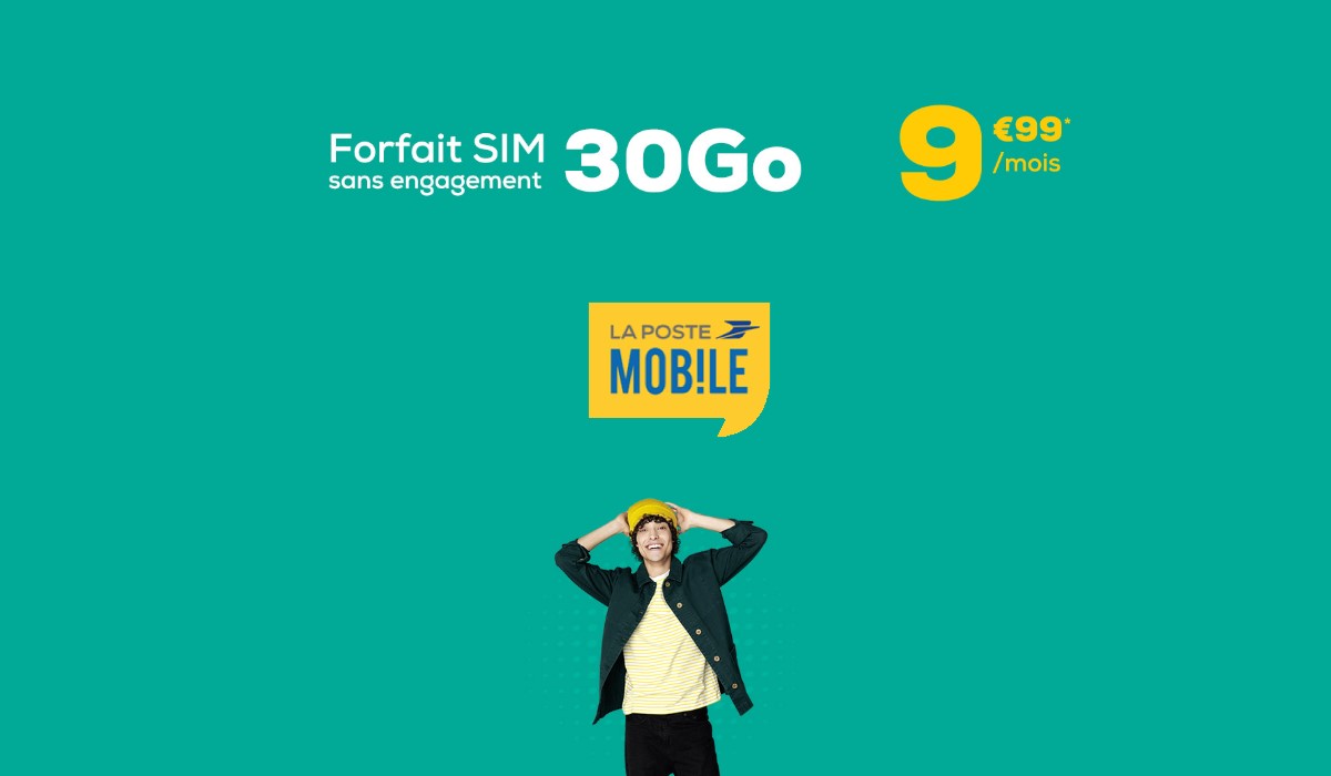 L’opérateur La Poste Mobile commercialise un forfait SIM 30Go à 9.99€ par mois sans engagement et sans condition de durée. Cette formule regroupe les appels illimités vers les mobiles et fixes de France métropolitaine et DOM ainsi que les SMS et MMS illimités en France métropolitaine. Pour la partie Internet mobile, cet abonnement intègre 30Go d’Internet mobile sur le grand réseau SFR. Au-delà de l’enveloppe internet, vous pouvez utiliser des recharges pour continuer de surfer en appelant le 2525. Autre caractéristique, ce forfait La Poste Mobile vous permet également de voyager sereinement depuis l’Europe et les DOM. En effet, vous disposez des appels, SMS et MMS illimités vers ces destinations et la France métropolitaine. De plus, 10Go de votre enveloppe internet sont utilisables tous les mois en Europe et DOM.