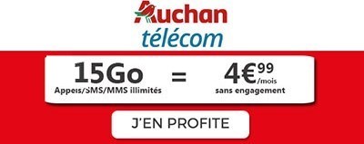 Dernière chance pour le forfait pas cher de Auchan Telecom : 15Go à 4.99€ durant 6 mois puis 10€