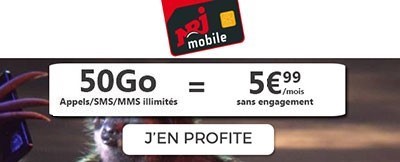 L'opérateur NRJ Mobile met lui aussi en avant une promo avec 50Go de 4G. Le tarif de cette série spéciale est à seulement 5.99€ par mois les six premiers mois avant de repasser à son tarif d'origine de 15.99€ par mois. Ce forfait pas cher est sans engagement de durée, rien ne vous oblige à rester client à l'issue de la promotion. Pour profiter de cette promo mobile, vous devez vous inscrire avant ce dimanche 9 février 23h59.