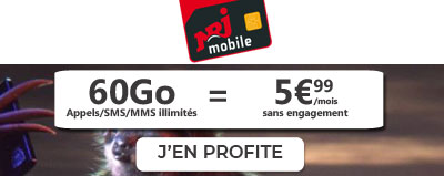 Le MVNO NRJ Mobile propose une promo forfait mobile via son site Web affichée à seulement 5.99€ par mois les six premiers mois avant de repasser au tarif public de 15.99€ par mois. L'offre est en exclusivité pour les nouveaux clients et ce, jusqu'au 12 Mars inclus. Concernant les services, vous profiterez d'une enveloppe Web de 60Go en France ainsi que 3Go depuis l'Europe et les DOM. Cet abonnement vous donner aussi la possibilité d'émettre vos appels et d'échanger des SMS et MMS sans compter en France mais aussi lors de vos voyages en Europe et DOM.