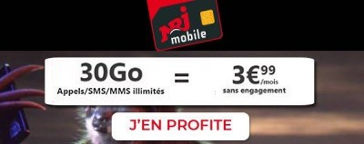 Le MVNO NRJ Mobile propose une série spéciale 30Go à seulement 3.99€ par mois les six premiers mois jusqu'au 25 mars inclus. Cet abonnement est disponible dans le cadre d'une nouvelle souscription. Cette offre promotionnelle est valable durant une période de 6 mois puis l'offre repasse à son prix initial de 12.99€ par mois.