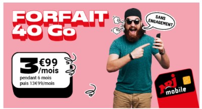 Promo NRJ Mobile : Le forfait 40Go à 3,99€/mois en vente privée prolongée