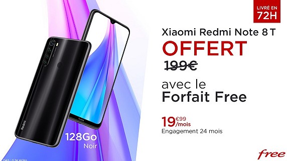 Les internautes inscrits sur Veepee peuvent ainsi toujours profiter du forfait Free 100Go pour 19.99€ par mois (ou 15.99€ par mois pour les abonnés Freebox). En prime, le Smartphone Xiaomi Redmi Note 8T 128Go leur est offert. A noter que ce téléphone portable coûte habituellement 199€. Cette souscription est soumise à un engagement de 2 ans et la carte SIM est facturée lors de la commande, au prix de 10€.