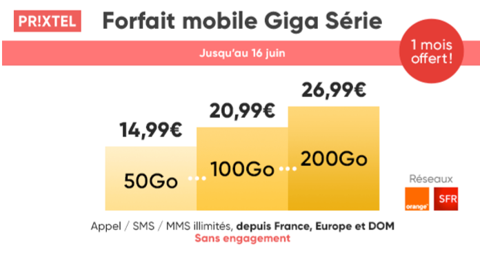 Forfait Giga Série 100 Go Prixtel : 1 mois d’abonnement offert