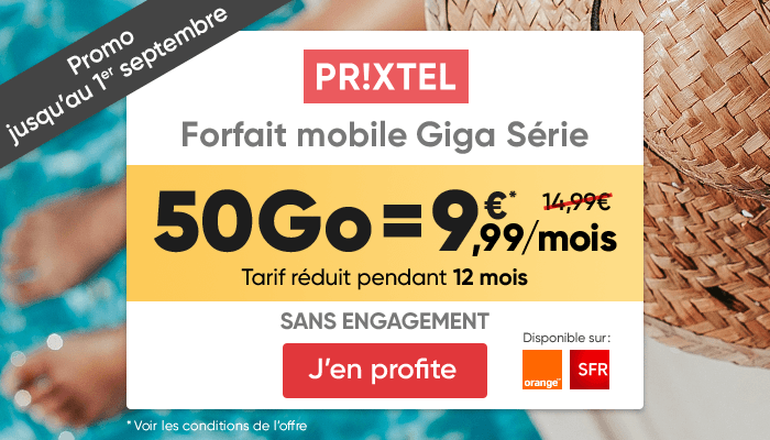 - 9,99 € (au lieu de 14,99 €) pour une consommation mensuelle de moins de 50 Go ;