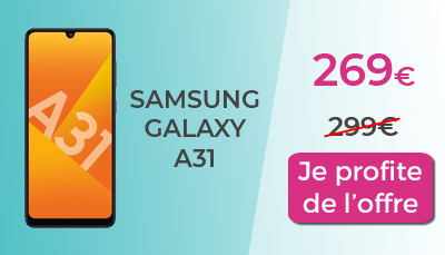 Le Samsung Galaxy A31 propose de son côté un stockage interne de 64Go et un module photo composé de quatre capteurs avec un objectif principal de 48Mpx. Ici aussi la batterie offre une autonomie très longue durée de 5000mAh.