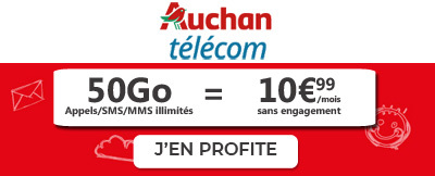 Chez Auchan Télécom, vous allez pouvoir choisir entre deux promos forfaits mobiles. Cette fois-ci ces offres sont valables jusqu'au 9 septembre, sans aucune condition de durée, leurs prix ne changeront pas. La première promo intègre 50Go de 4G pour 10,99€/mois sans engagement. Elle inclut les appels, les SMS et les MMS illimités depuis la France, l'UE et les DOM.