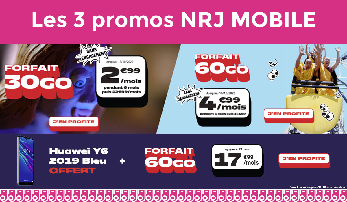 Besoin d'un smartphone avec un forfait mobile complet et pas cher ! Encore une fois NRJ sait répondre à votre demande avec une promotion en ligne jusqu'au 31 octobre prochain.