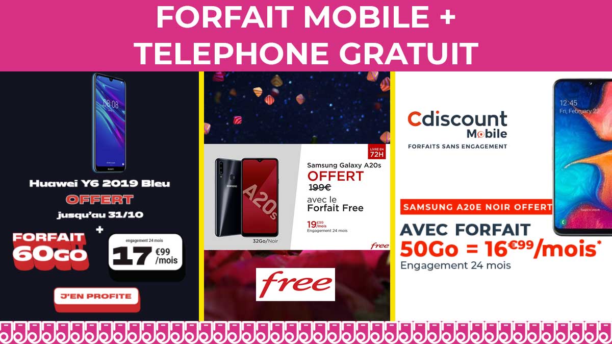 Cdiscount Mobile vous propose de souscrire à un forfait mobile avec téléphone gratuit jusqu'au 31 octobre 2020 inclus. Cette offre vous permet de bénéficier d'un forfait 50Go à 16,99€/mois avec un engagement de 24 mois. Ce forfait mobile inclus les communications illimitées, 50Go de 4G en France métropolitaine et 3Go de 4G depuis l'UE et les DOM.