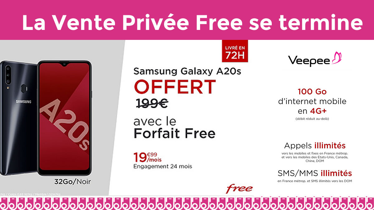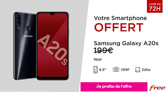 Pour même pas un euro, Free et Veepee vous proposent d'obtenir jusqu'au 3/11 à 6H, le récent smartphone Samsung A20S en coloris noir avec 32Go de mémoire d'une valeur de 199€.