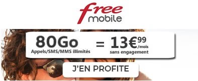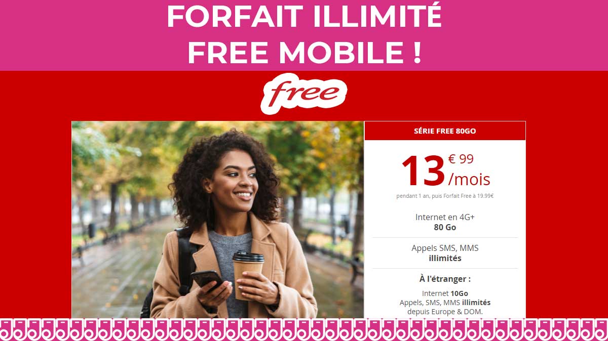 Vous avez désormais jusqu'au 1er décembre 2020 inclus pour profiter de cette nouvelle promo forfait mobile. Free vous propose sa série limitée 80Go à seulement 13,99€/mois. Comme toutes ses promos, cette offre n'est valable que pendant la première année d'abonnement. En effet, Free vous fera ensuite profiter de son forfait classique avec 100Go de 4G à 19,99€/mois, à 15,99€/mois pour ses abonnés Freebox et à 9,99€/mois pour les détenteurs d'une Freebox Pop.