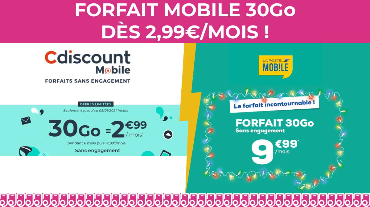 Jusqu'au 23 Janvier 2021 inclus, vous pouvez choisir de souscrire au forfait sans engagement de La Poste Mobile. Ce forfait mobile avec 30Go de 4G est proposé à 9,99€/mois avec un prix sans condition de durée. Vous ne subirez aucune augmentation après 6 mois d'abonnement. Les forfaits mobiles de La Poste sont déployés sur le réseau 4G/4G+ de SFR.