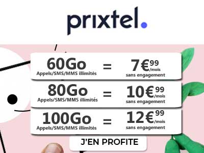 Le forfait flexible Prixtel de 60Go à 100Go à partir de 7.99€ par mois (sur Orange ou SFR)