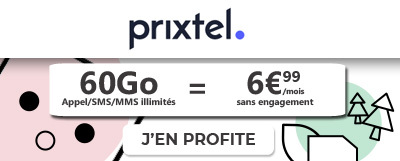 Jusqu'au 16 novembre inclus, le forfait Le grand du MVNO Prixtel est en promotion la première année. Cette offre sans engagement de durée s'ajuste tous les mois à la consommation internet de 60Go à 100Go. Le premier palier celui qui nous intéresse ici inclut une jolie enveloppe Web de 60Go à seulement 6.99€ par mois pendant 1 an puis 12.99€ par mois. En plus de ce beau volume, les abonnés profitent :