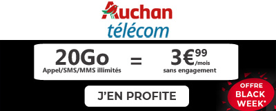 Auchan Télécom : 20 Go à 3,99€/mois pendant 1 an