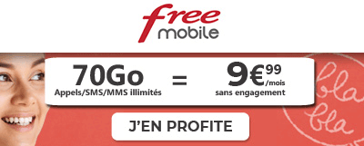 La série Free Mobile est disponible au prix très intéressant de 9€99 pendant 1 an, puis passera à 19€99 à la fin de cette période. Cet abonnement sans engagement présente une enveloppe de données mobiles de 70Go en 4G+. Vous pourrez échanger à volonté puisque les appels, SMS et MMS sont en illimités. Lors de vos déplacements à l'étranger en Europe et dans les DOM, il vous sera attribué 10Go supplémentaires et vous aurez toujours les échanges à volonté.
