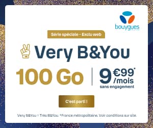 B&You a sorti le grand jeu avec son offre mobile disponible uniquement aujourd'hui ! Vous êtes au bon endroit pour dénicher la pépite que vous recherchez. En effet, dans le cadre des séries spéciales Very B&You, Bouygues Telecom propose un forfait alliant de la data et un mini prix ! Il s'agit d'une formule sans engagement, comprenant 100Go de données mobiles, le tout pour 9€99 par mois.