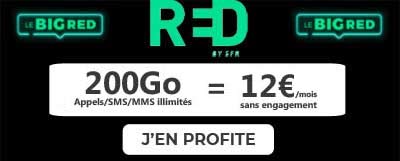 Vous êtes à l'affût d'un forfait mobile avec 200 Go de données mobiles ? Nous vous avons dégoté une promotion qui ne vous laissera pas de marbre ! Ce super bon plan est à saisir chez RED by SFR ! Le tarif de l'abonnement RED by SFR ? 12€ par mois pour un max d'avantages !