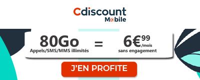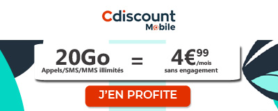 Avec son abonnement mobile 20 Go, Cdiscount Mobile a sorti le grand jeu ! Avec ses 20 Go de data utilisables dans la métropole, l'offre Cdiscount Mobile devrait vous séduire. Les services proposés par ce forfait mobile illimité comprennent en plus 7Go de data sur le réseau de Bouygues depuis l'Outre-Mer et depuis l'UE. De plus, ses appels, SMS et MMS illimités vous permettront d'utiliser votre mobile en toute tranquillité, que ce soit dans l'Hexagone, depuis les DOM ou depuis l'UE.