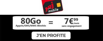 Avis aux gros consommateurs de data ! NRJ Mobile met en promo un forfait XXL avec 80 Go. Jusqu'au 13 avril, le forfait NRJ Mobile est commercialisé au super tarif de 7,99 €/mois, puis l'offre passera à 12,99 €/mois au bout de 12 mois.