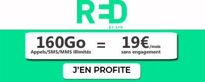 Vous vous classez parmi les gros consommateurs de données mobiles ? RED by SFR ne vous a pas oublié, et vous offre un maxi abonnement 160 Go. Si le forfait RED by SFR vous intéresse, vous pourrez bénéficier de 160 Go de data sur le réseau de SFR en France métropolitaine. Si cette offre mobile illimitée vous séduit, vous pourrez en plus consommer 17 Go de data depuis l'Outre-Mer et depuis l'Union européenne. De plus, avec ses appels, SMS et MMS illimités, et ce, dans l'Hexagone, depuis les DOM et depuis l'UE, cet abonnement de téléphone sans engagement a tout pour vous convaincre.