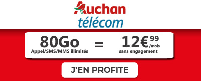 Si vous êtes en quête d'un forfait de téléphone 80 Go, voilà une promo qui a de quoi vous séduire. Pour en bénéficier, c'est chez Auchan Telecom que ça se passe ! Si vous vous décidez pour l'abonnement Auchan Telecom, vous aurez la possibilité de naviguer sur le web à hauteur de 80 Go sur le réseau de Bouygues dans l'Hexagone. Ses 12 Go de data (inclus) vous permettront d'utiliser votre mobile en toute tranquillité, que ce soit depuis les départements d'Outre-mer ou depuis l'Union européenne. Par ailleurs, les services offerts par cette offre mobile illimitée incluent des appels, SMS et MMS illimités, et ce, en France métropolitaine, depuis l'Outre-Mer et depuis l'UE.