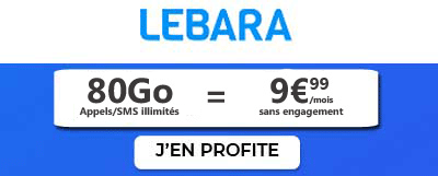 Nous vous avons déniché une première promo pour un abonnement de téléphone 80 Go sur le réseau Orange ! Ce super bon plan est à saisir chez Lebara Mobile ! Ce fameux forfait vous est offert au prix mini de 9,99 €/mois. Cette bonne affaire est valable sans condition de durée : pas de mauvaise surprise après quelques mois !
