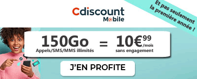 Si vous cherchez un forfait de téléphone avec le plein de data, voilà une autre promotion de Cdiscount Mobile qui ne vous laissera pas de marbre.Jusqu'au 31 mai, ce MVNO vous propose un abonnement de téléphone sans engagement avec 150Go au prix extraordinaire de 10,99 €/mois. Pas de douche froide après quelques mois : cette promo est valable sans condition de durée !