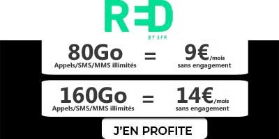 Envie de pouvoir surfer sans vous priver (ou presque) sur votre smartphone grâce à une enveloppe 4G ultra généreuse ? Venez voir du côté des maxi forfaits mobiles en promo de l'opérateur 100% web RED by SFR. Au choix, vous avez tout d'abord la formule 80 Go à 9 € par mois et à côté un abonnement 160 Go à 14 € par mois. Ces deux solutions sont elles aussi sans engagement.