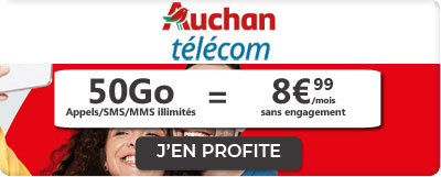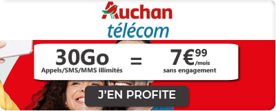 Auchan Télécom est un opérateur discount disponible exclusivement en ligne. Cela lui permet de proposer des forfaits mobiles moins chers et c'est le cas avec son offre mobile 30Go. Disponible jusqu'au 11 octobre inclus, cet abonnement est disponible à seulement 7,99€/mois sans condition de durée. Vous pourrez donc profiter de votre nouveau forfait mobile sans craindre une augmentation dans les douze mois. De plus, comme c'est un forfait sans engagement, vous n'avez aucune obligation de rester abonné et vous pouvez rompre votre contrat dès que vous en aurez envie.