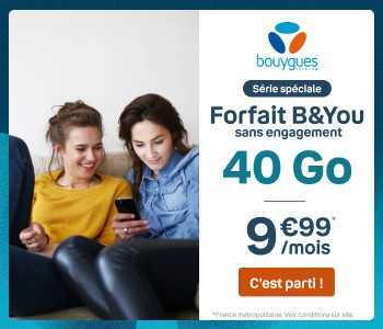 Bouygues Telecom propose un forfait B&You 40 Go à 9,99 € par mois sans engagement : ne manquez pas ce bon plan !