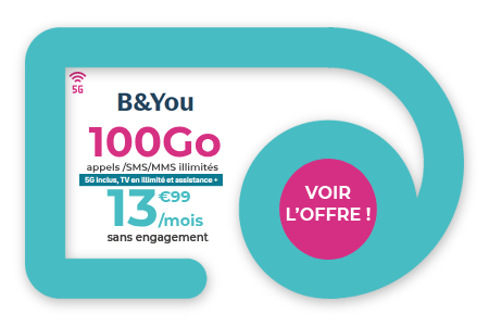 Contrôlez vos dépenses grâce à cette offre extrêmement avantageuse. Profitez d'une tarification compétitive qui vous donne accès à une gamme complète de services sans impacter votre budget. En ces temps où chaque euro est précieux, le forfait B&You 100Go Max se distingue par son accessibilité. Il est disponible au tarif de 13.99€ par mois, avec en bonus la carte SIM à seulement 1€ au lieu de 10€.