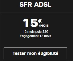 - BOX SFR Starter à 15€ par mois pendant un an en ADSL puis 33€ après, ou à 19€ en version Fibre et 38€ au delà