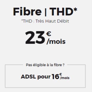 RED by SFR poursuit sur sa lancée en proposant des promos sur ses offres fixes ADSL et Fibre optique. En effet, la BOX Fibre est affichée à 23€ par mois, tarif valable à VIE et sans aucun engagement de la part des abonnés qui peuvent résilier leur offre à tout moment. Pour les foyers non éligibles à la Fibre, il est toujours possible de souscrire la RED BOX ADSL pour 16€ seulement par mois (à VIE également).