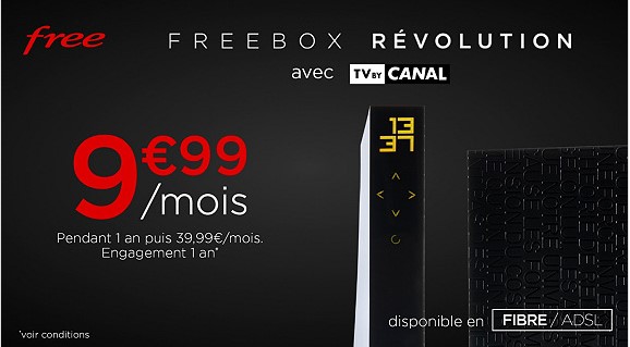 Veepee propose en ce moment et jusqu’au jeudi 5 mars 2020 6h la BOX Free Révolution avec TV by CANAL pendant 1 an à prix réduit. En effet, celle-ci est affichée à 9.99€ les 12 premiers mois. Au-delà, le tarif passe à 39.99€. Toutefois, il s’agit d’une offre soumise seulement à un engagement d’un an. Vous pourrez donc, à ce moment là, changer de Fournisseur d’Accès Internet si vous le souhaitez.