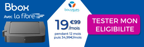Les box internet à petit prix ne proposant qu'un accès internet et les appels vers les fixes, ne sont pas nombreuses sur le marché. Bouygues Telecom en propose une, la Bbox Fit, à seulement 19,99€/mois avec un engagement d'un an et la location de la box est incluse. Selon votre éligibilité , vous pourrez en profiter avec une connexion fibre ou ADSL, le prix sera identique la première année. Ensuite, la Bbox Fit ADSL passera à 24,99€/mois et la version fibre optique passera à 26,99€/mois.